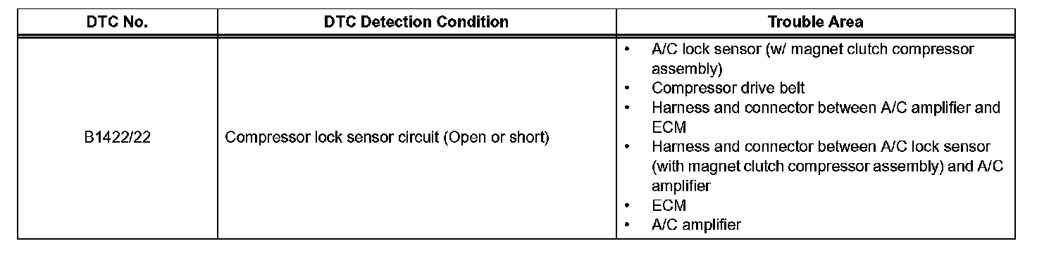DTC B1422/22 Compressor Lock Sensor CircuitDESCRIPTION