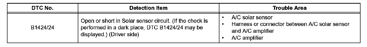 DTC B1424/24 Solar Sensor Circuit (Driver Side)DESCRIPTION