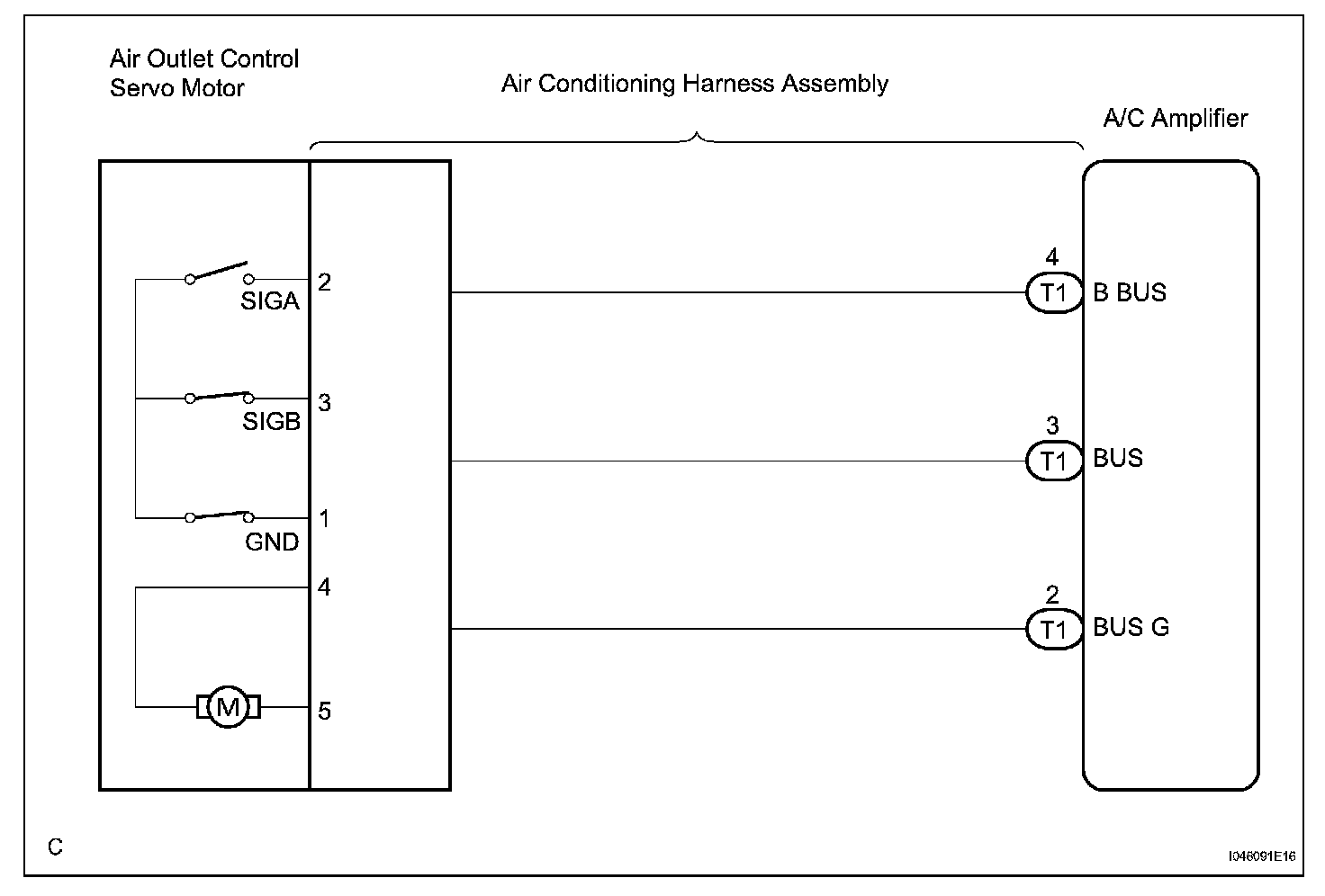 DTC B1443/43 Air Outlet Damper Control Servo Motor CircuitDESCRIPTION