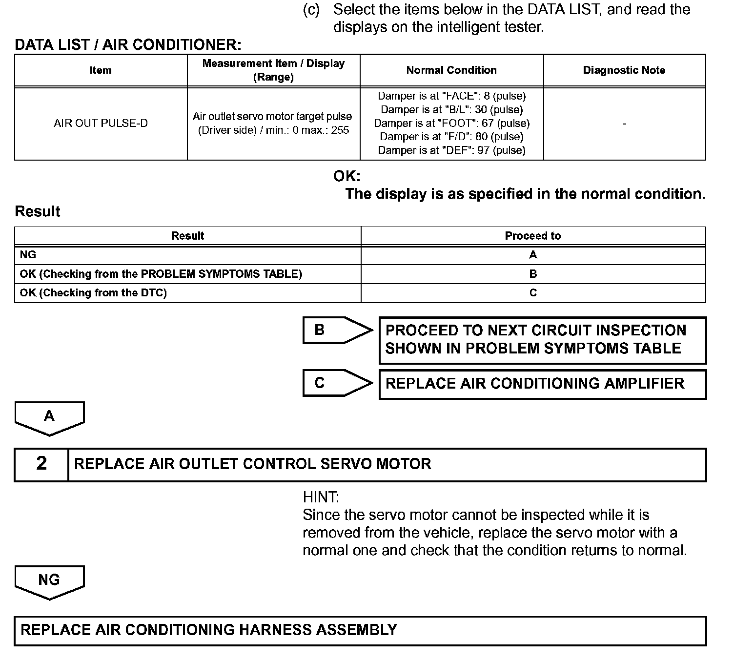 HINT: Confirm that no mechanical problem is present because this diagnostic code can be output when either a damper link or damper is mechanically locked.