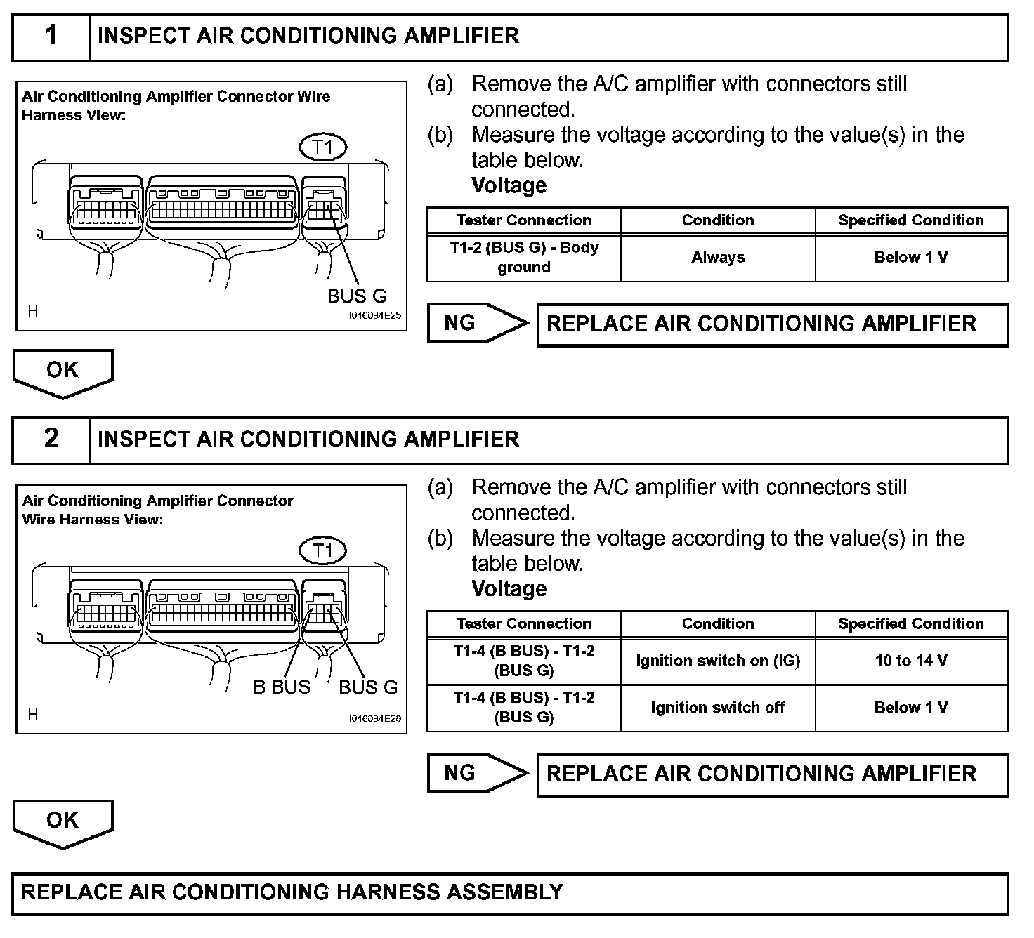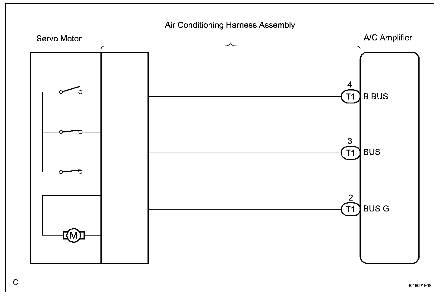The air conditioning harness assembly connects the air conditioning amplifier and each servomotor. The A/C amplifier supplies power and sends operation instructions to each servomotor through the air conditioning harness assembly. Each servomotor sends the damper position information to the A/C amplifier.