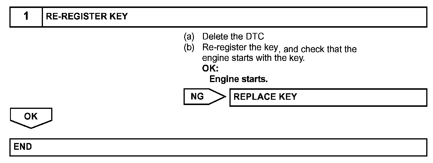 This DTC is output when: 1) during the key code registration, a key malfunction occurs; or 2) the key code was unable to be registered properly. Follow the inspection procedure.