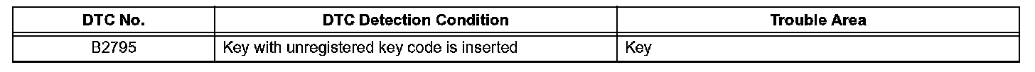 This DTC is output when a key with a key code that has not been registered in the ECU is inserted into the ignition key cylinder.
