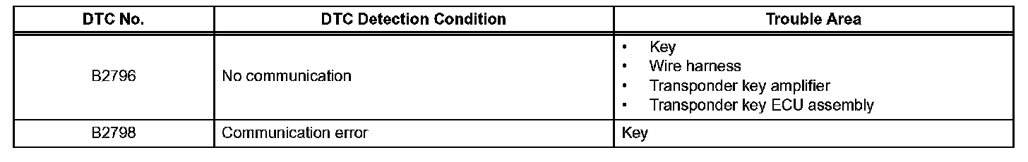 DTC B2796 No Communication in Immobilizer SystemDTC B2798 Communication Malfunction No. 2
