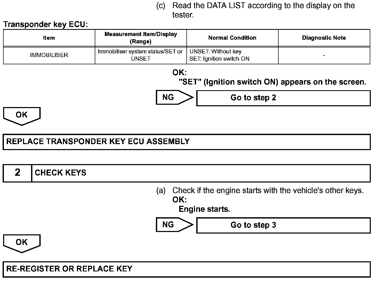 This DTC is output when a key that does not have a transponder chip is inserted into the ignition key cylinder or if communication between the key and transponder key ECU assembly is not possible.