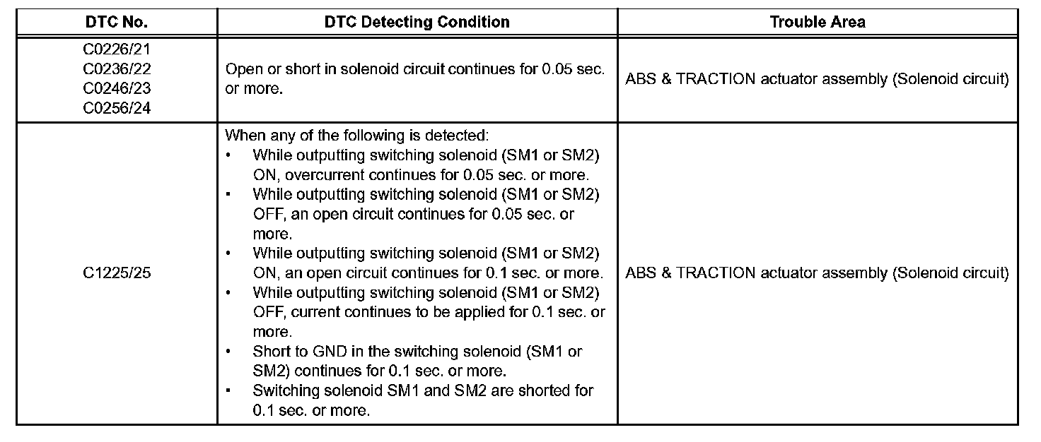 DTC C0236/22 SFL Solenoid CircuitDESCRIPTION