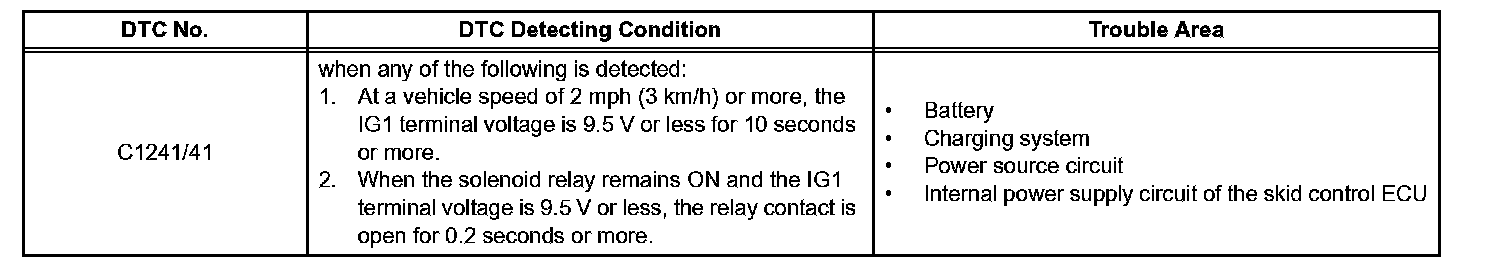 DTC C1241/41 Low Battery Positive Voltage or Abnormally High Battery Positive VoltageDESCRIPTION