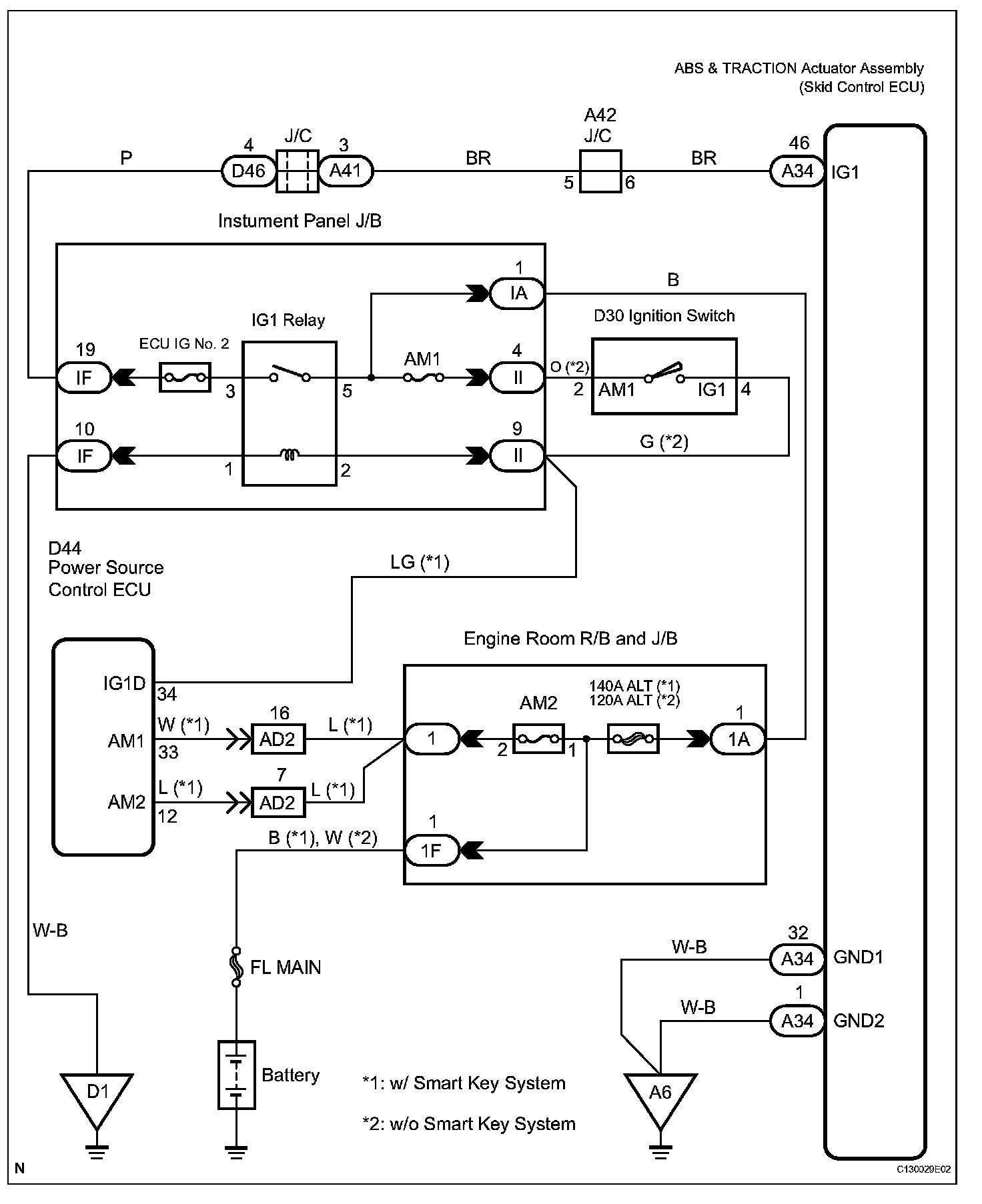 If a malfunction is detected in the power supply circuit, the skid control ECU (housed in the ABS & TRACTION actuator assembly) outputs the DTC and prohibits operation with the fail-safe function.