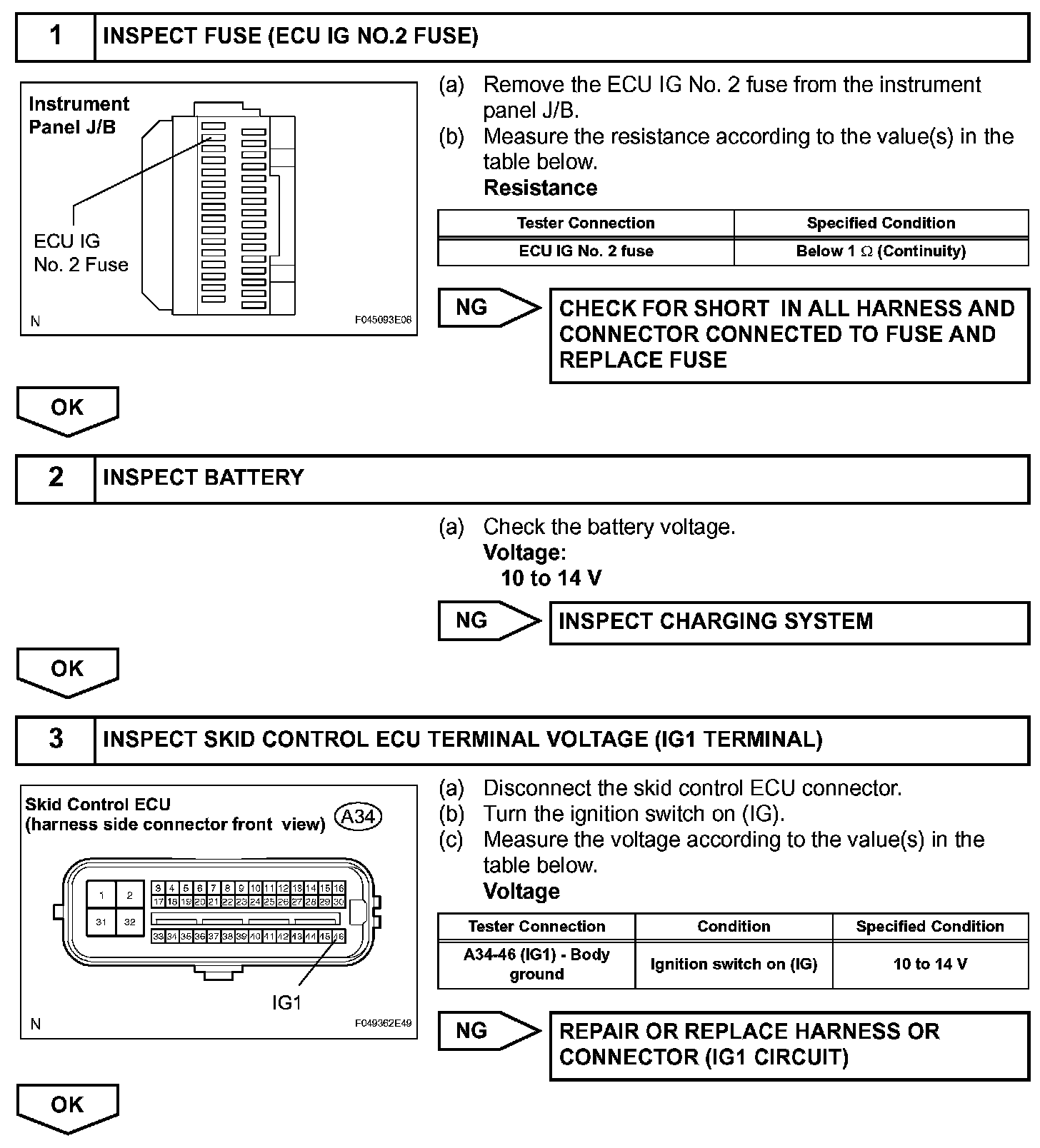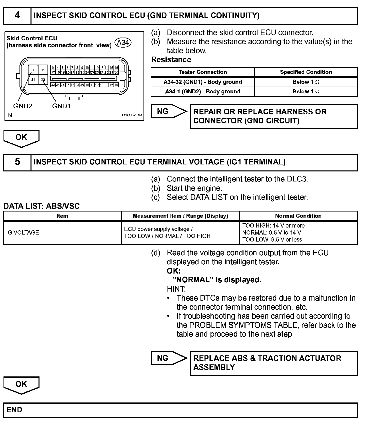 The DTC is cancelled when the IG1 terminal voltage returns to normal.