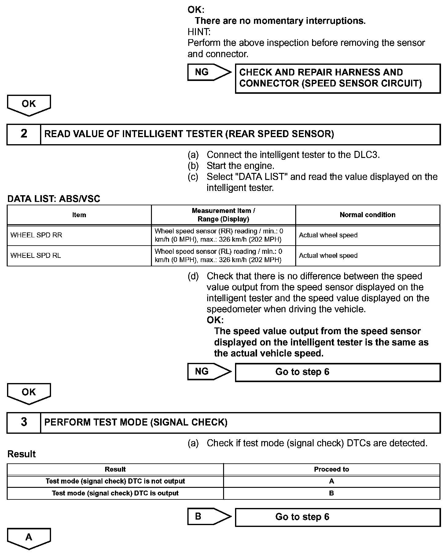 HINT: Start the inspection from step 1 when using the intelligent tester and start from step 3 when not using the intelligent tester.