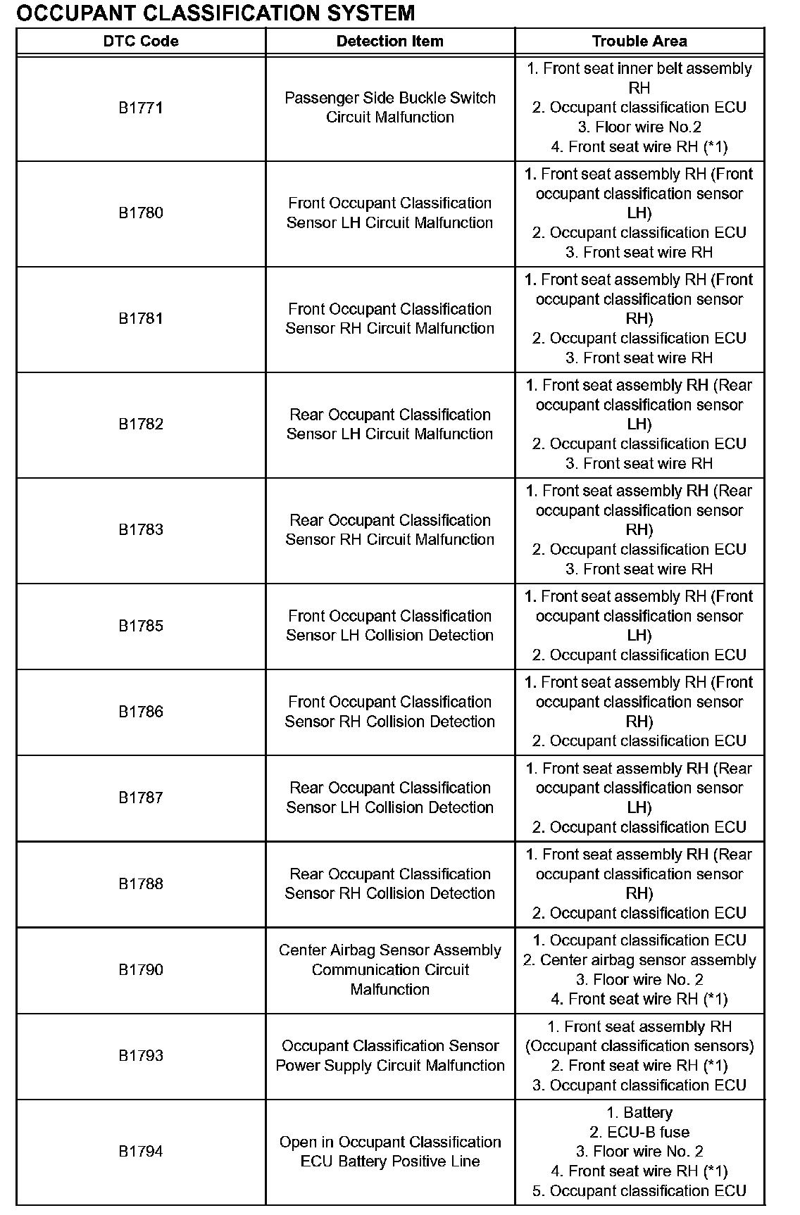 DTCS FOR OCCUPANT CLASSIFICATION SYSTEM