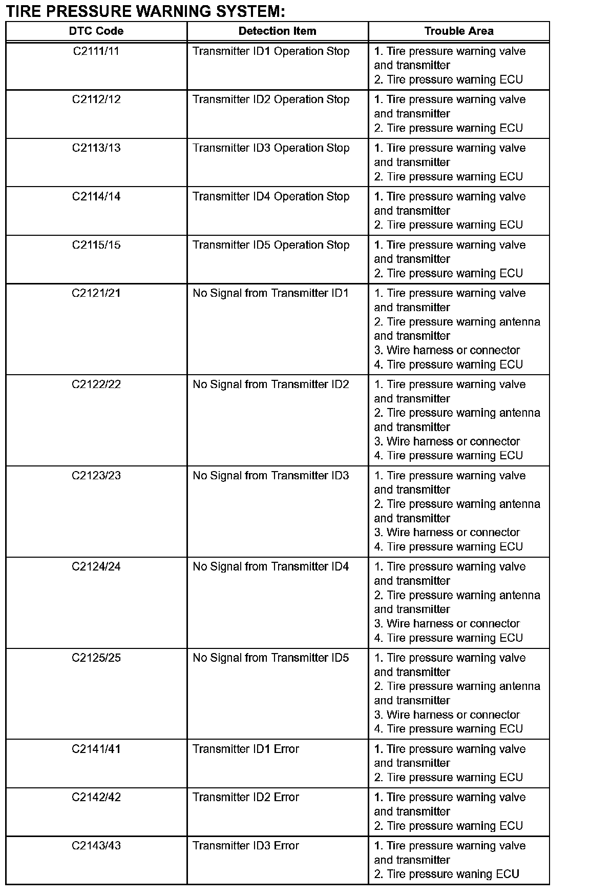TIRE PRESSURE WARNING SYSTEM: