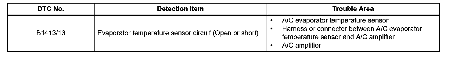 DTC B1413/13 Evaporator Temperature Sensor CircuitDESCRIPTION