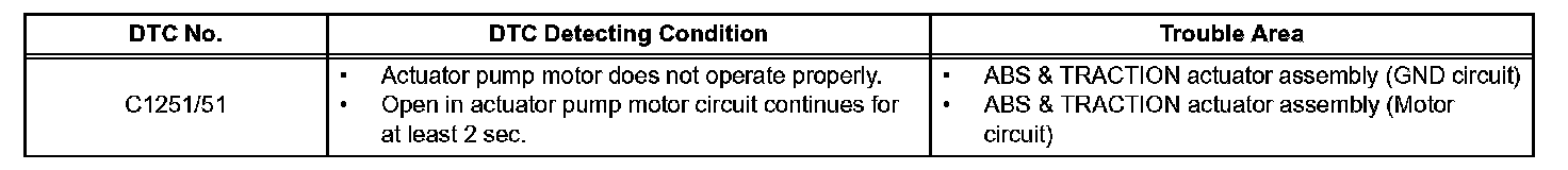 DTC C1251/51 Open in Pump Motor CircuitDESCRIPTION