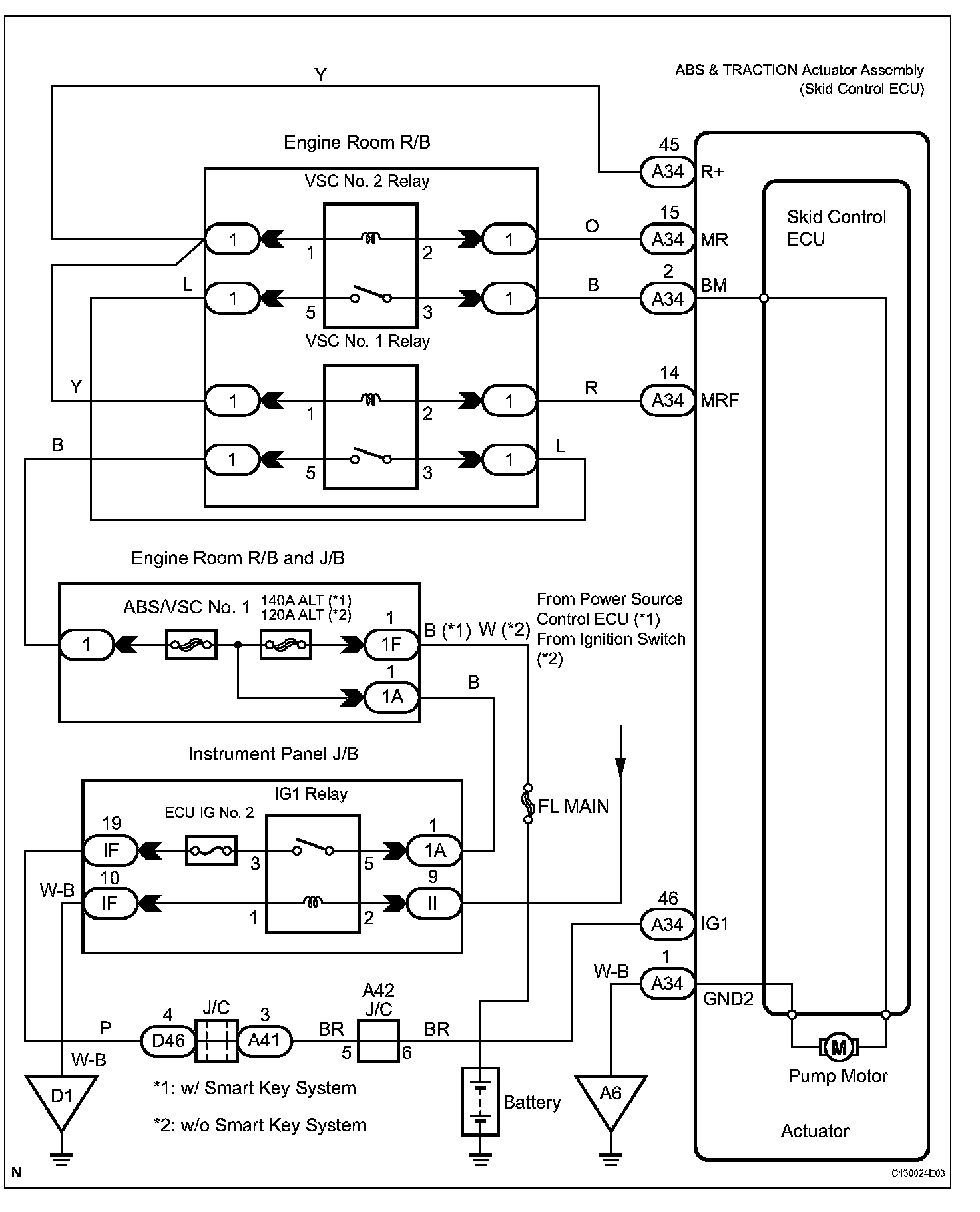 The pump motor is located inside the ABS & TRACTION actuator assembly.