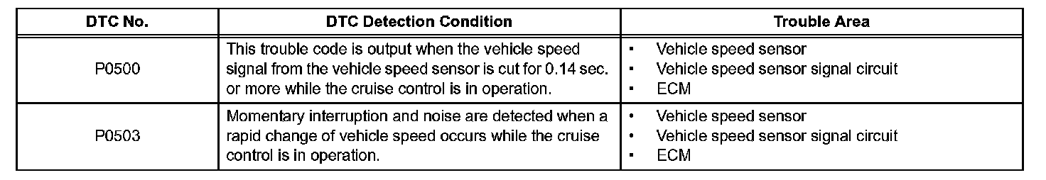 DTC P0500 Vehicle Speed Sensor MalfunctionDTC P0503 Vehicle Speed Sensor Circuit Malfunction