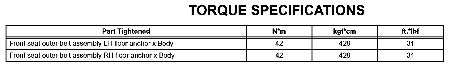 Interior - Torque Specifications: