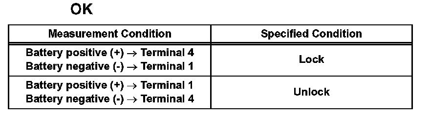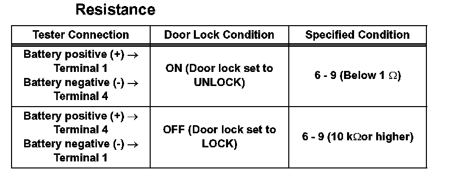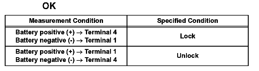 b. Apply battery voltage to the door lock and check operation of the door lock motor.