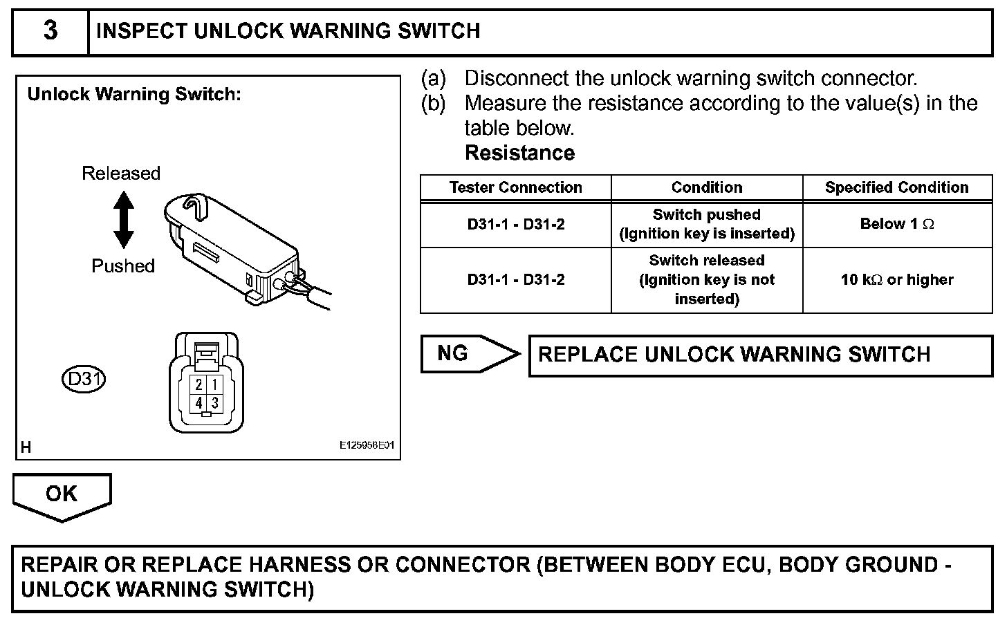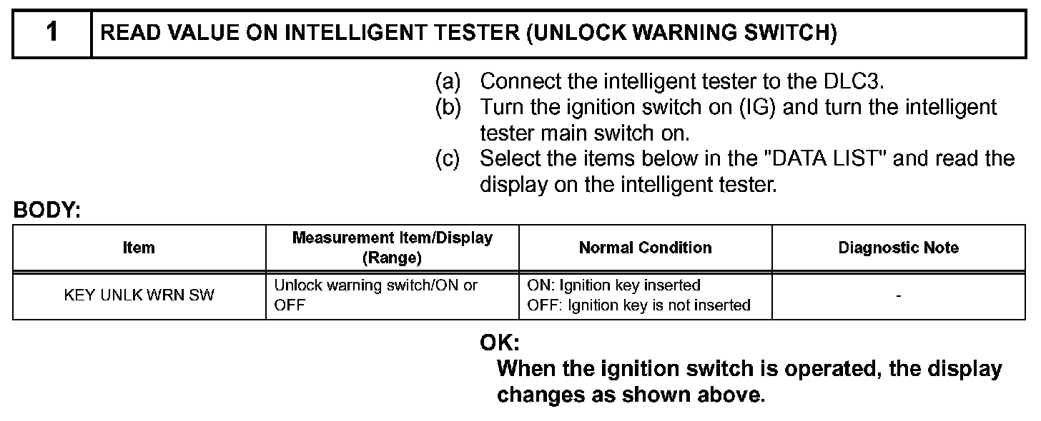 The multiplex network body ECU determines whether the key is inserted into the ignition key cylinder based on signals from the unlock warning switch.