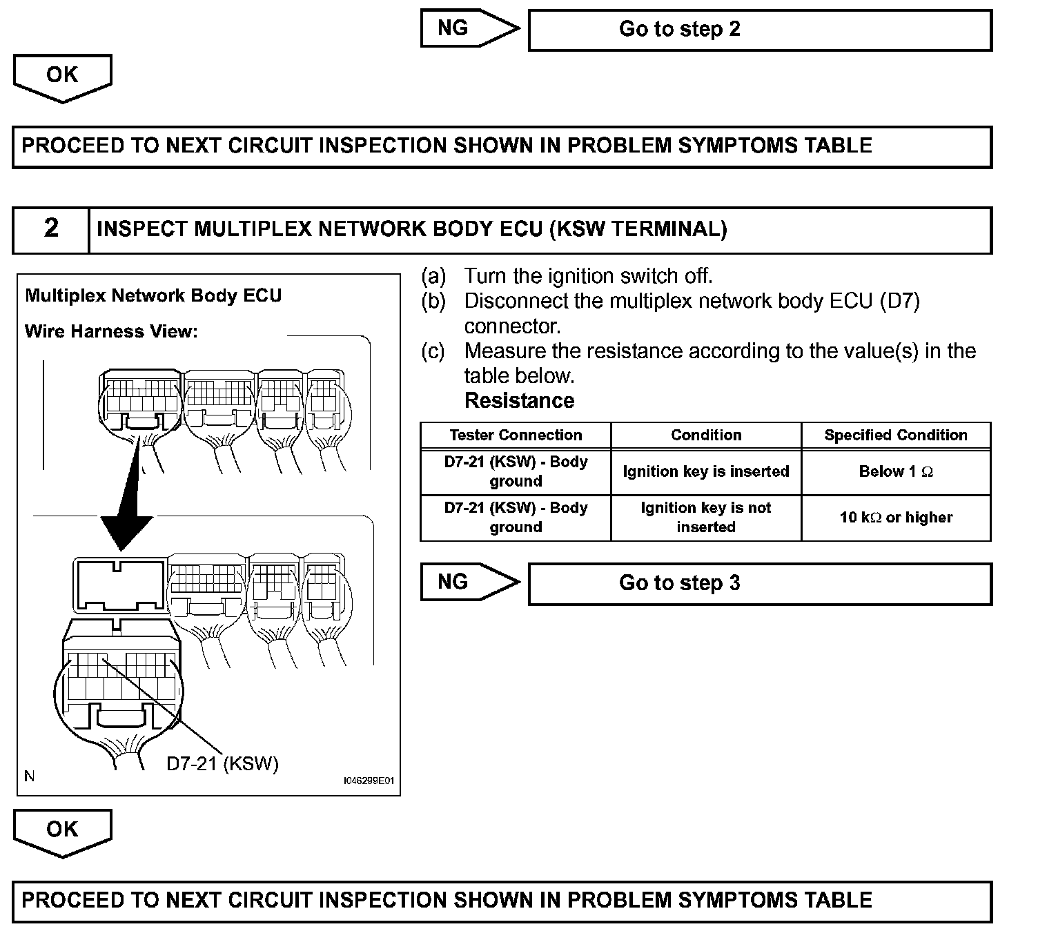 HINT: Start the inspection from step 1 when using the intelligent tester and start from step 2 when not using the intelligent tester.