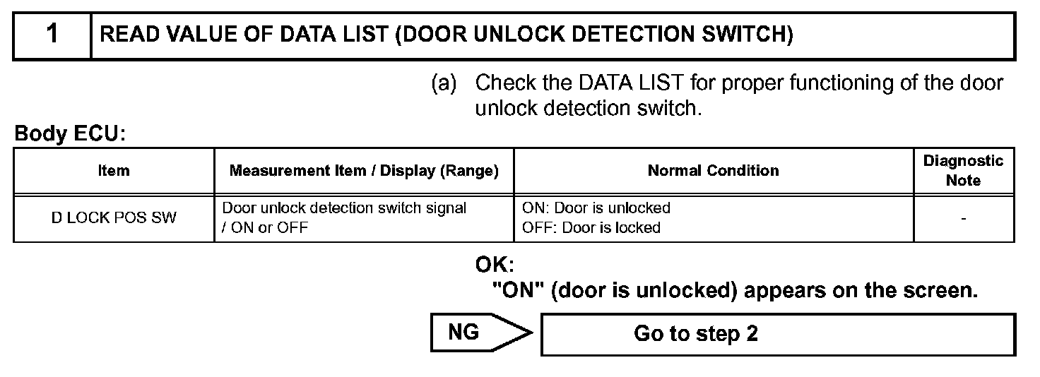 Driver Side Door UNLOCK Detection Switch CircuitDESCRIPTION
