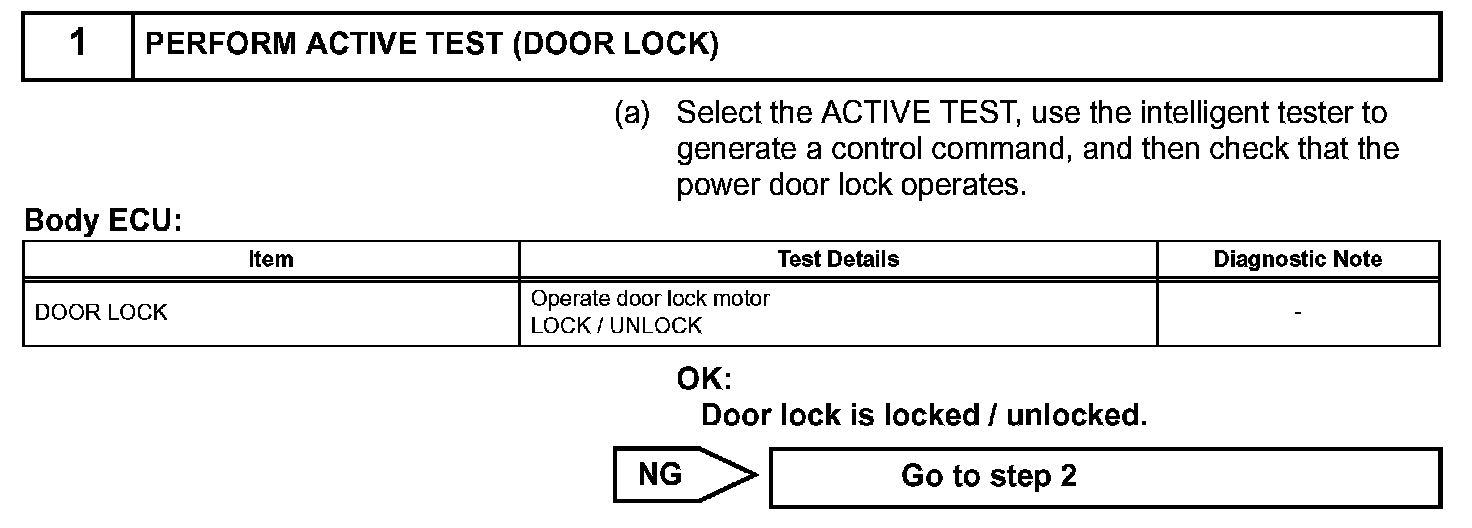 The body ECU receives the front passenger door lock switch signal from the master switch and operates the door lock motor.