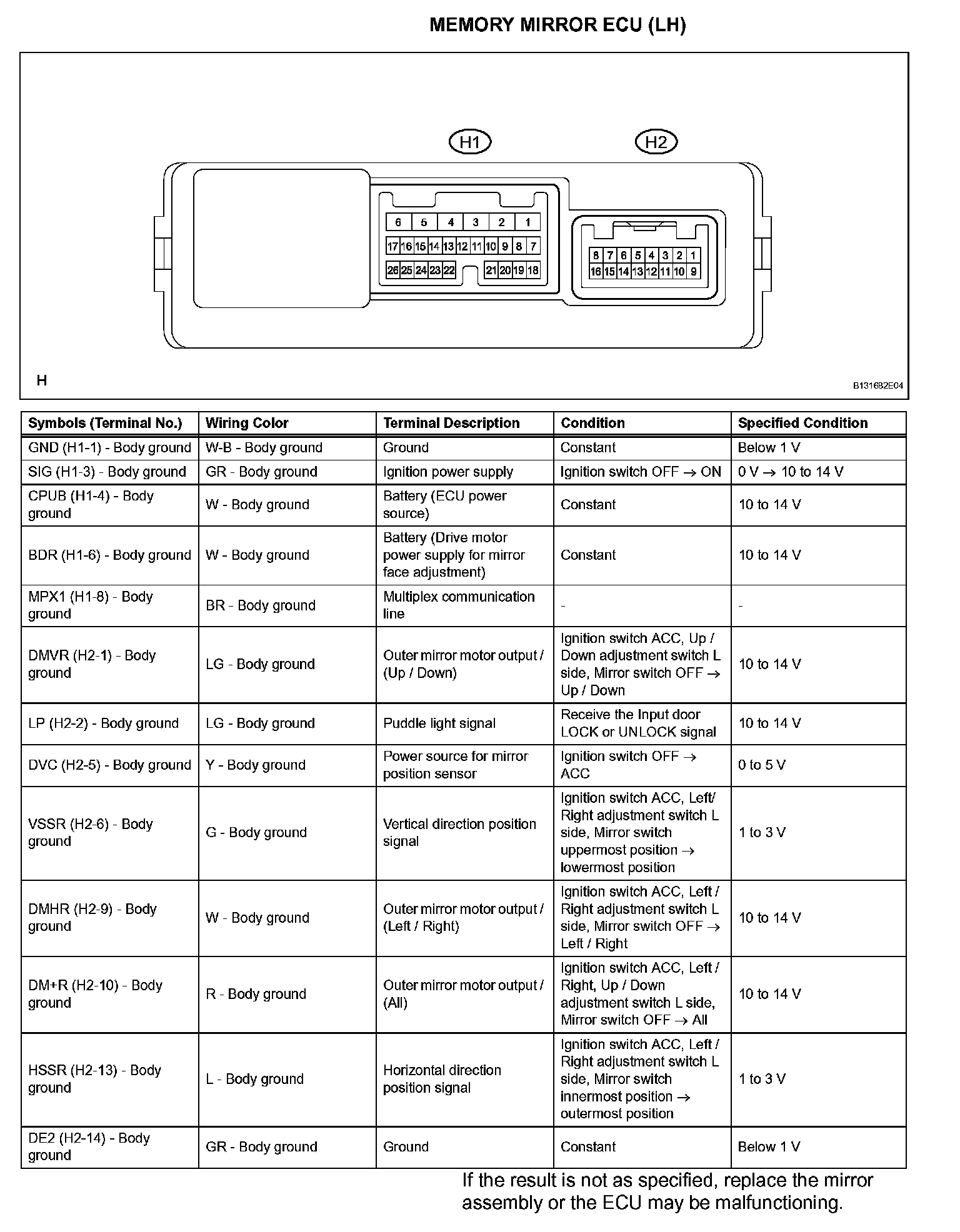 Terminals Of Control Module/Pinouts - Memory Mirror ECU(LH):