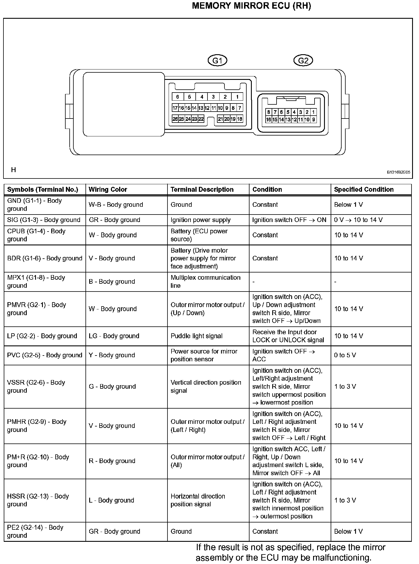 Terminals Of Control Module/Pinouts - Memory Mirror ECU (RH):