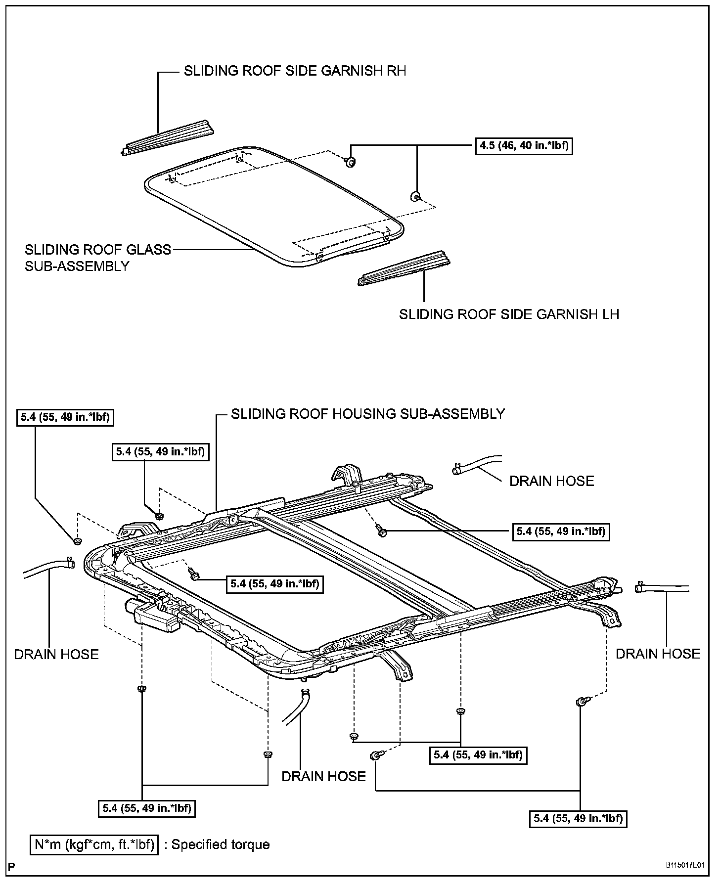 a. Using a torx driver (T25), remove the 4 torx screws and sliding roof glass sub-assembly.