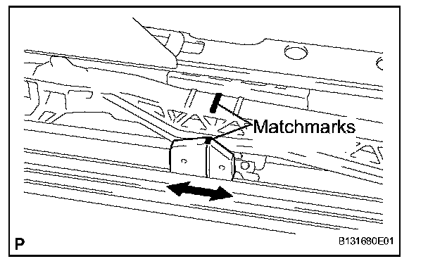 a. Using a screwdriver, slide the sliding roof drive cable sub-assembly to align the matchmarks.