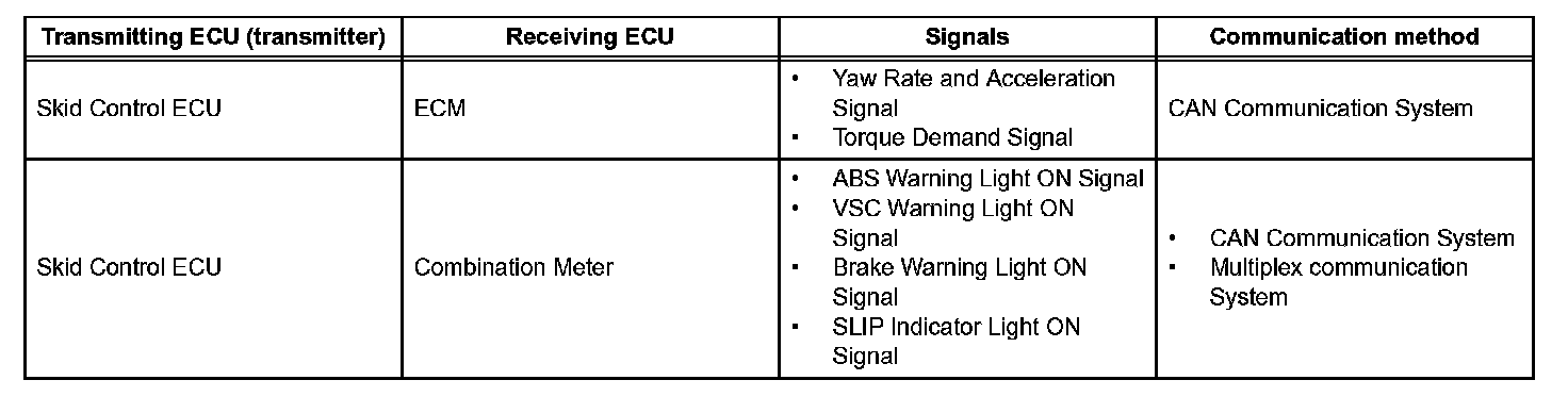 - The yaw rate sensor and acceleration sensor are combined and in a signal unit. This unit communicates with the skid control ECU through CAN communication.
