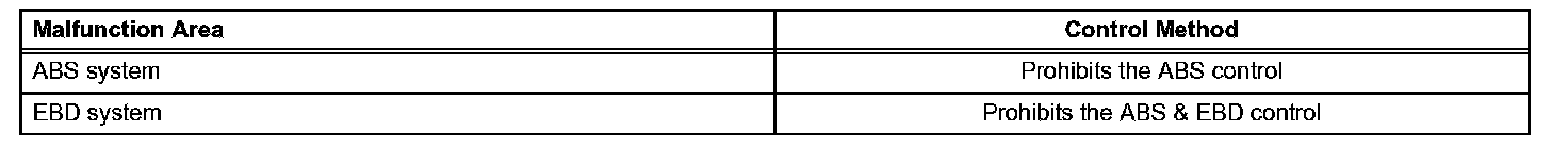 ABS control will be prohibited, but EBD control continues as much as possible. If EBD control is impossible, the brake warning light will come on to warn the driver.