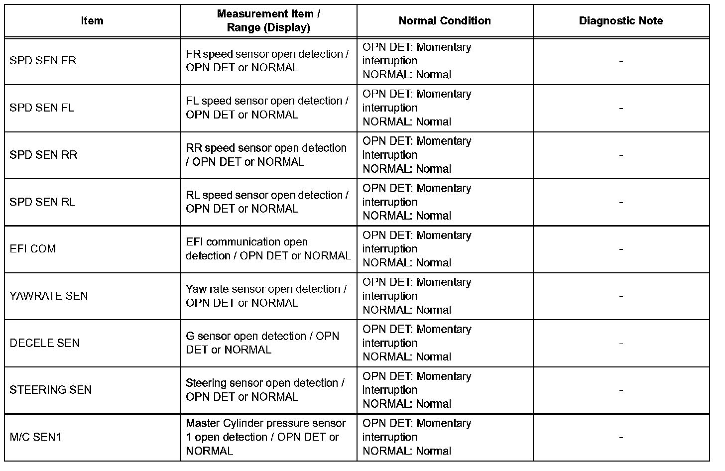 - If the status remains on (OPN DET displayed), check the continuity between the ECU and the sensors, or between ECUs.