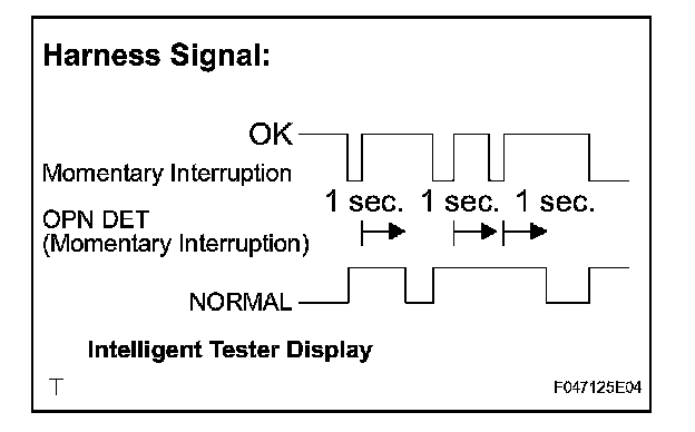 - The OPN DET display on the intelligent tester remains on for 1 second after the harness signal changes from momentary interruption (open circuit) to normal condition.