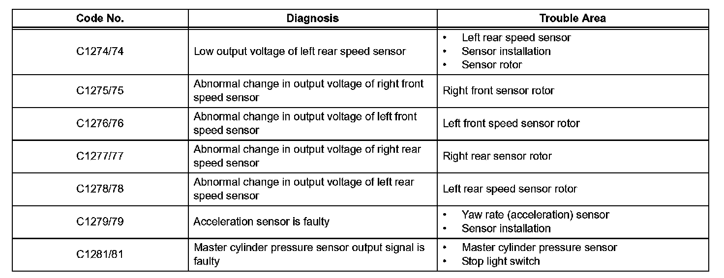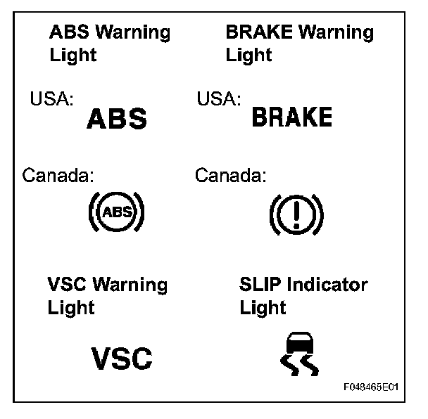 HINT: If the skid control ECU stores any DTCs, the ABS warning light, VSC warning light and SLIP indicator light come on.