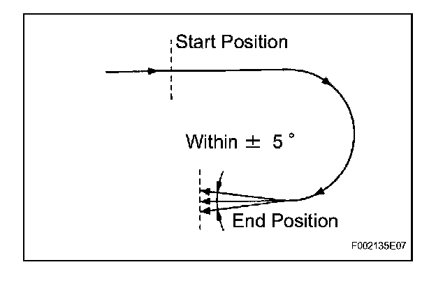 1. Move the shift lever to the D position and drive the vehicle at a speed of approximately 3 mph (5 km/h), turn the steering wheel either to the left or right 90 ° or more until the vehicle makes a 180 ° turn.