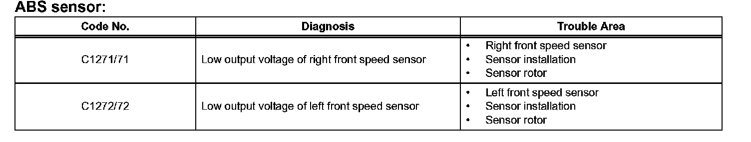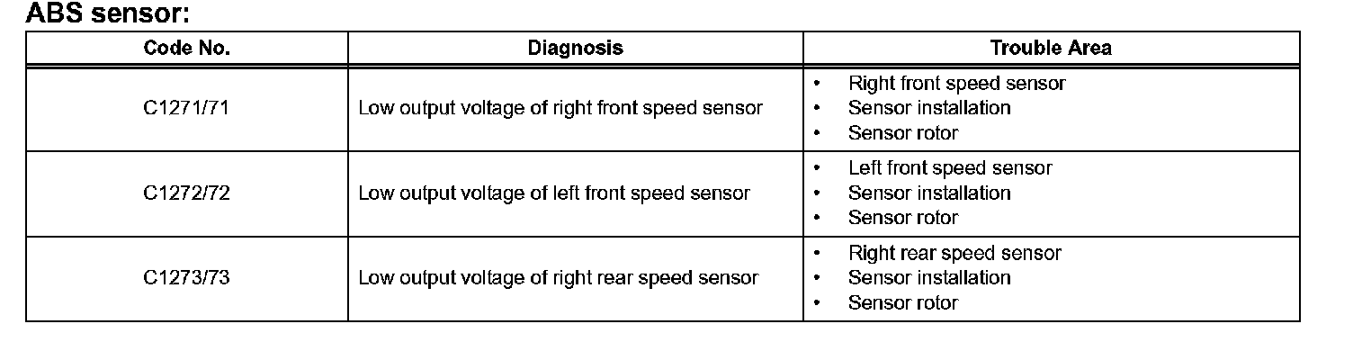 - The speed sensor signal check may not be completed if the speed sensor signal check is started while turning the steering wheel or spinning the wheels.