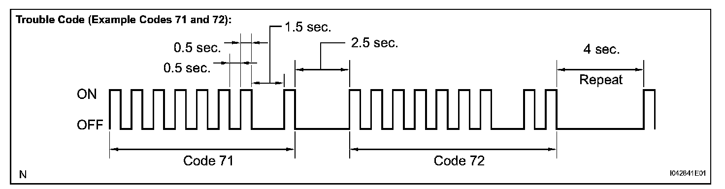 HINT: When the signal check has been completed, the ABS warning light goes off while driving and blinks in the test mode pattern while stationary.