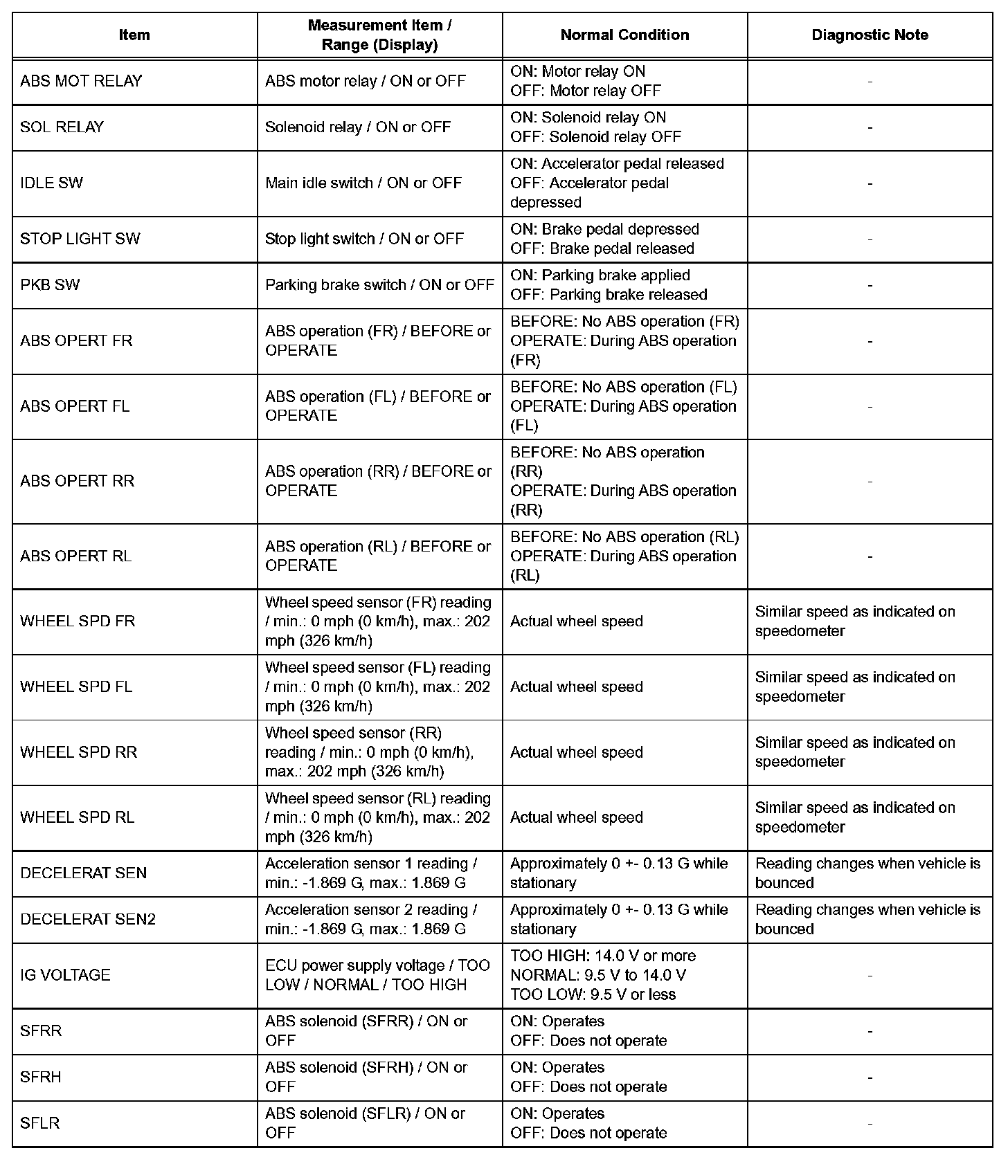 HINT: With the intelligent tester connected to the DLC3 and the ignition switch on (IG), the ABS, TRAC and VSC data list can be displayed. Follow the prompts on the intelligent tester screen to access the DATA LIST.