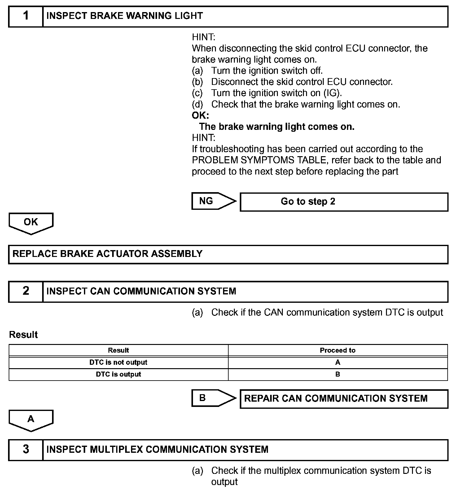1. The skid control ECU connector is disconnected from the skid control ECU.