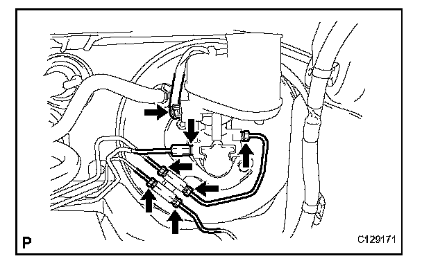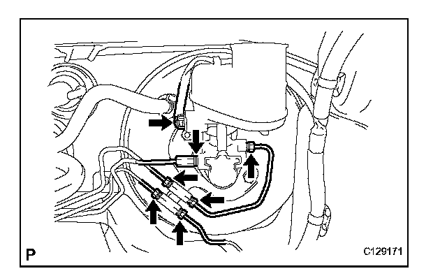 (b) Using SST, disconnect the 6 brake tubes from the brake master w/ plate cylinder sub-assembly.