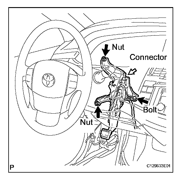 (d) Remove the bolt, 2 nuts and parking brake control pedal assembly from the body.
