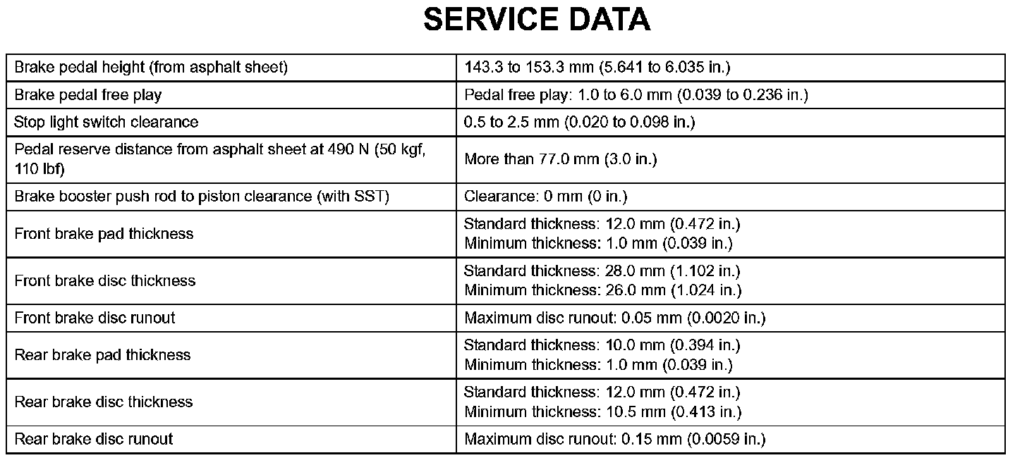 Brake - Service Data: