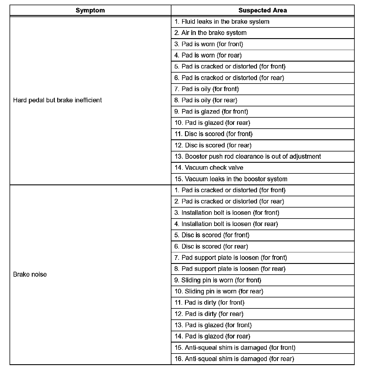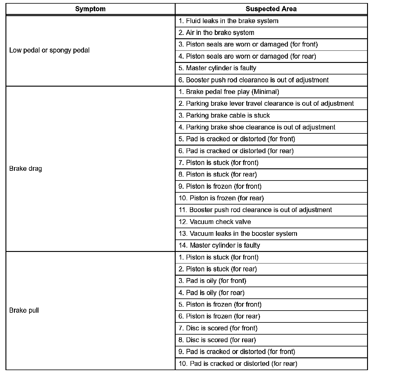 PROBLEM SYMPTOMS TABLEUse the table below to help find the cause of each problem. The numbers indicate the priority of the likely cause of the problem. Check each part in order. If necessary, replace these parts.