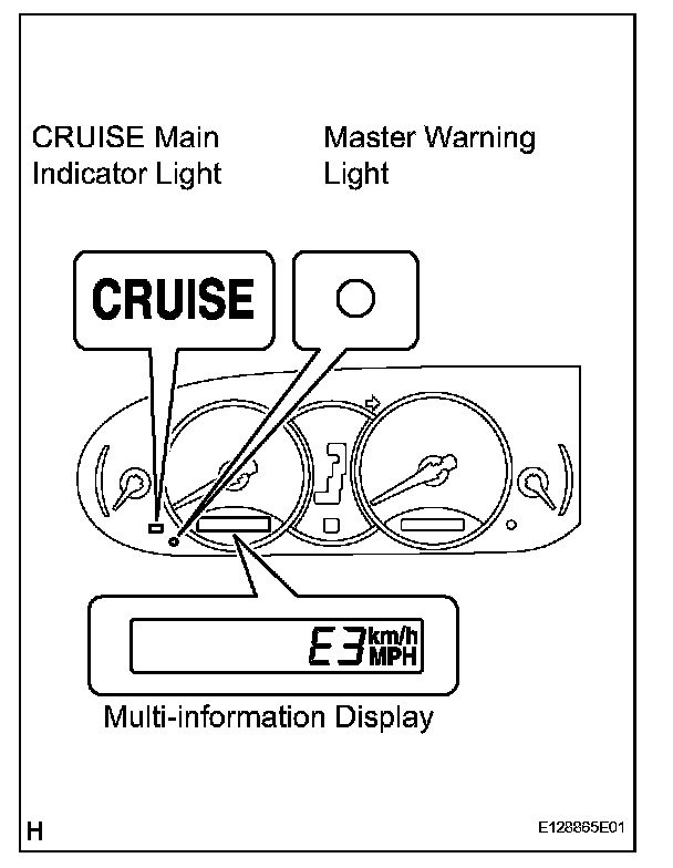 a. The diagnosis function makes the master warning light and the multi-information display come on, and the CRUISE main indicator light blinks. When a malfunction occurs in the dynamic laser cruise control system, the DTCs are stored in the ECM.