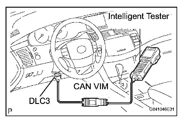 1. Connect the intelligent tester to the Controller Area Network Vehicle Interface Module (CAN VIM). Then connect the CAN VIM to the Data Link Connector 3 (DLC3).