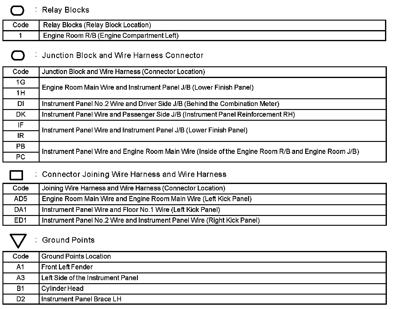 Locations: The locations of components, connectors, ground points, and splices referred to within these diagrams can be found at Vehicle Locations. Locations