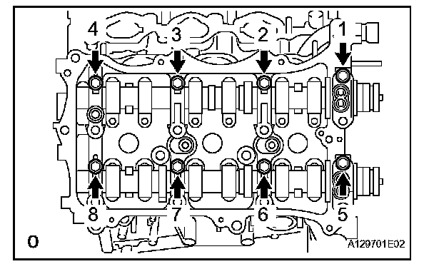 (d) Temporarily tighten the 8 bolts in the order shown in the illustration.