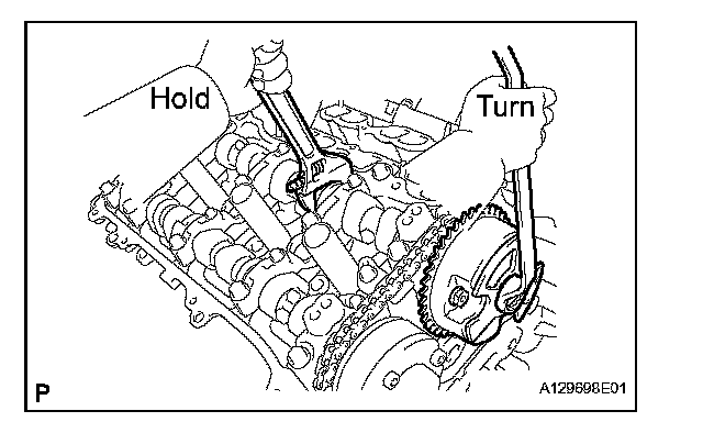 (c) Turn the camshaft timing gear assembly on the RH bank counterclockwise to tighten the chain between the banks.