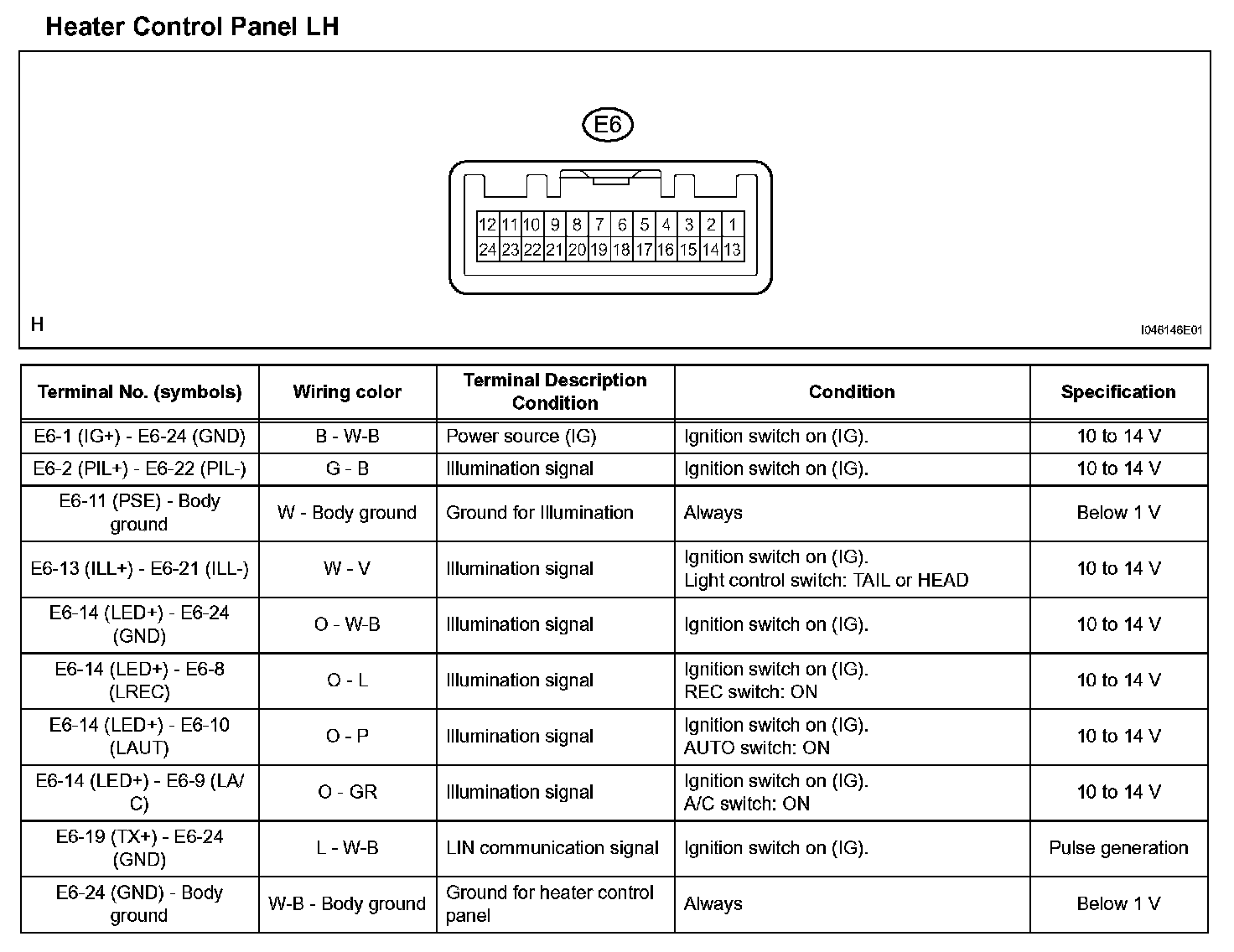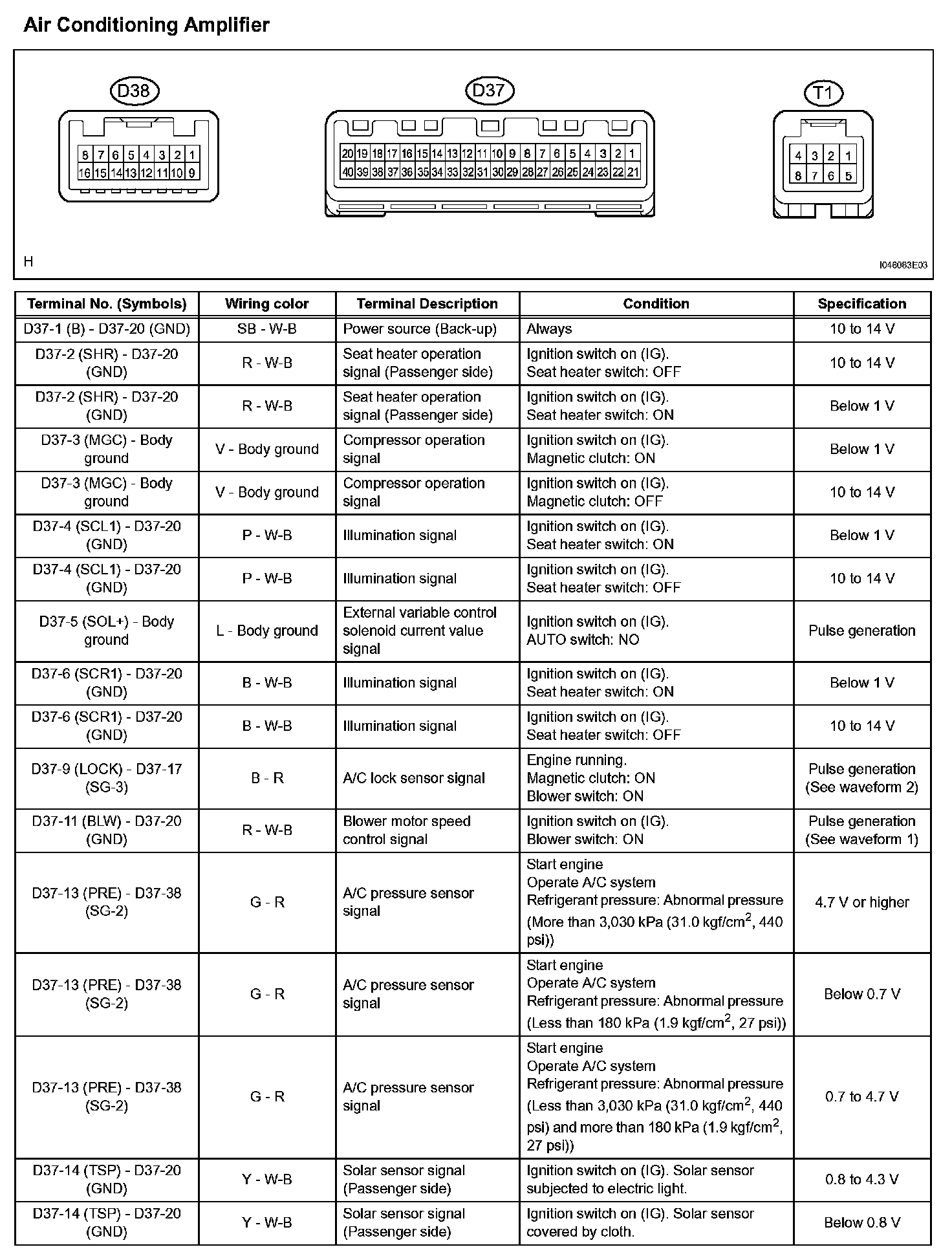 Pinout Values and Diagnostic Parameters